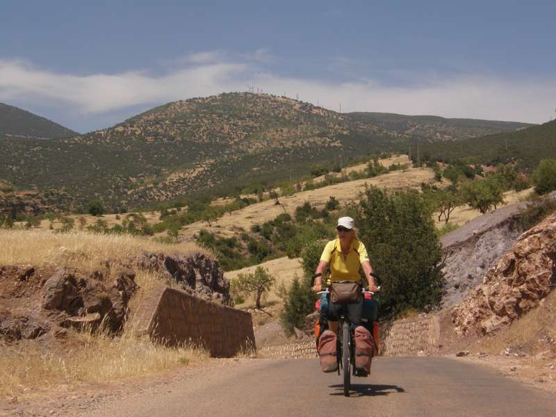 Es geht recht easy durch das dem Großen Atlas vorgelagerte Hügelland. Auch hier ist gerade die Getreideernte in vollem Gange und fast alles wird noch mit mittelalterlicher Handarbeit verrichtet.