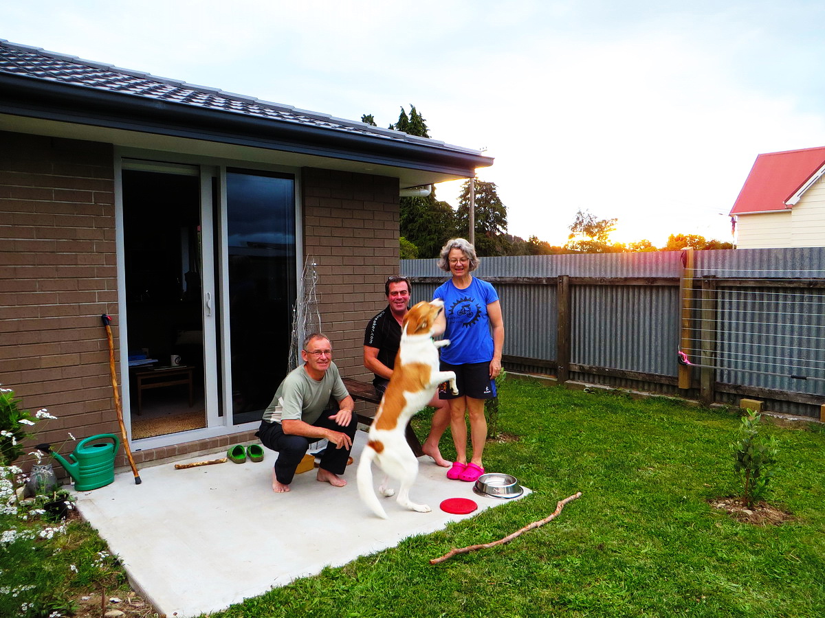 Zunächst werden wir nun von Don und Robyn in ihrem kleinen Haus in Reefton empfangen. Auch Snifter, ihr Hund, freut sich über den Besuch. Schon über hundert radfahrende Gäste haben sie beherbergt. Davon zeugt auch ein dickes Gästebuch. Sie selbst haben auch schon einige große Touren absolviert. Eine richtig lange Reise führte sie von London (Don stammt aus England) bis nach Singapur. Nun planen sie neue Touren und lassen sich von ihren vielen Gästen inspirieren. Die Beiden sind etwa in unserem Alter. Robyn hat am folgenden Tag Geburtstag und wird schon im Voraus ein bissel beschenkt und gefeiert. Reefton, die Stadt des Lichts: so verkündet ein Schild am Ortseingang. Wir erfahren, dass dies die erste Stadt Neuseelands war, die elektrisches Licht hatte. Wir fühlen uns jedenfalls pudelwohl bei Don und Robyn und der Abschied am nächsten Morgen fällt schwer.