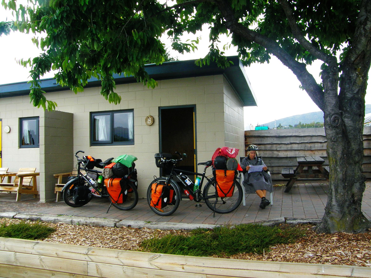 Im ganzen Land verteilt gibt es die staatlichen Holiday Parks. Meist in Städten und in manchen gleich mehrere. Diese großen Campingplätze bieten allen möglichen Komfort. Dazu gehören immer Küchenräume mit Aufenthaltsbereichen, die mal mehr und mal weniger gut ausgestattet sind, doch immer Möglichkeiten zum Kochen bieten und auch alle möglichen Geräte bereithalten, wie Microwellen, Toaster, Wasserkocher, Kühlschränke und ähnliches. Neben den Sanitäranlagen findet man auch immer Waschmaschinen und Trockner. Einige der Plätze sind echt nett angelegt und sehr gepflegt, andere eher etwas ungemütlicher. Die Holiday Parks sind die teurere Variante des Campens. In Neuseeland werden meist pro Gast die selben Gebühren erhoben, egal ob man motorisiert, mit großem Wohnmobil, oder mit Zelt und Rucksack oder, wie wir, mit Rad daher kommt. Da müssen manchmal schon weit mehr als 10 € pro Nase berappt werden. Das finden wir nicht so ganz gerecht, denn wir können weder einen Stromanschluss noch eine Abwasserstation ausgiebig nutzen. Es gibt auch einige wenige Campingplätze, die von einem Ortsverein oder von Privat betrieben werden. Häufig sind dies aber nur Wohnmobilstellplätze, also nichts für uns. Günstiger kann man es auf den vielen DOC Campingplätzen haben. Die Naturschutzorganisation hat vor allem außerhalb von Orten und in Wandergebieten Plätze zum Übernachten eingerichtet. Da kommt man auch schon ab 4-5 € pro Gast unter. Einige wenige stehen auch zur freien Benutzung offen. Die Plätze im unteren Preisniveau haben dann aber auch nur allerhöchsten ein Toilettenhäuschen zu bieten.