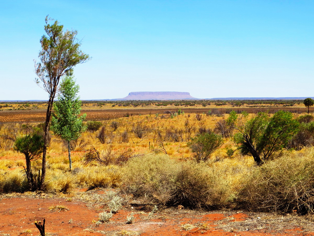 Die Aufregung wächst: Wir nähern uns dem Ayers Rock und halten eifrig Ausschau: Ist er etwa schon irgendwo zu sehen? Aber zunächst irritieren uns nur ein paar andere ähnlich aussehende und nicht minder beeindruckende Tafelberge, wie der Mount Connor. Das hätte uns doch ruhig jemand sagen können, dass es hier mehrere solche Berge gibt. So verschieben wir also das große Aha-Erlebnis erst mal und verbringen zuvor noch eine Nacht im Busch.